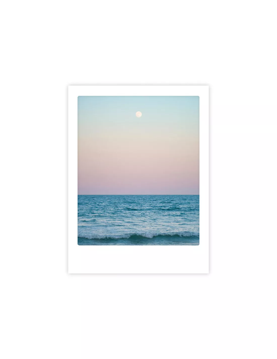 Affiche « Calm See » – Pickmotion : Une affiche représentant la mer et un ciel dégradé de rose et de bleu.