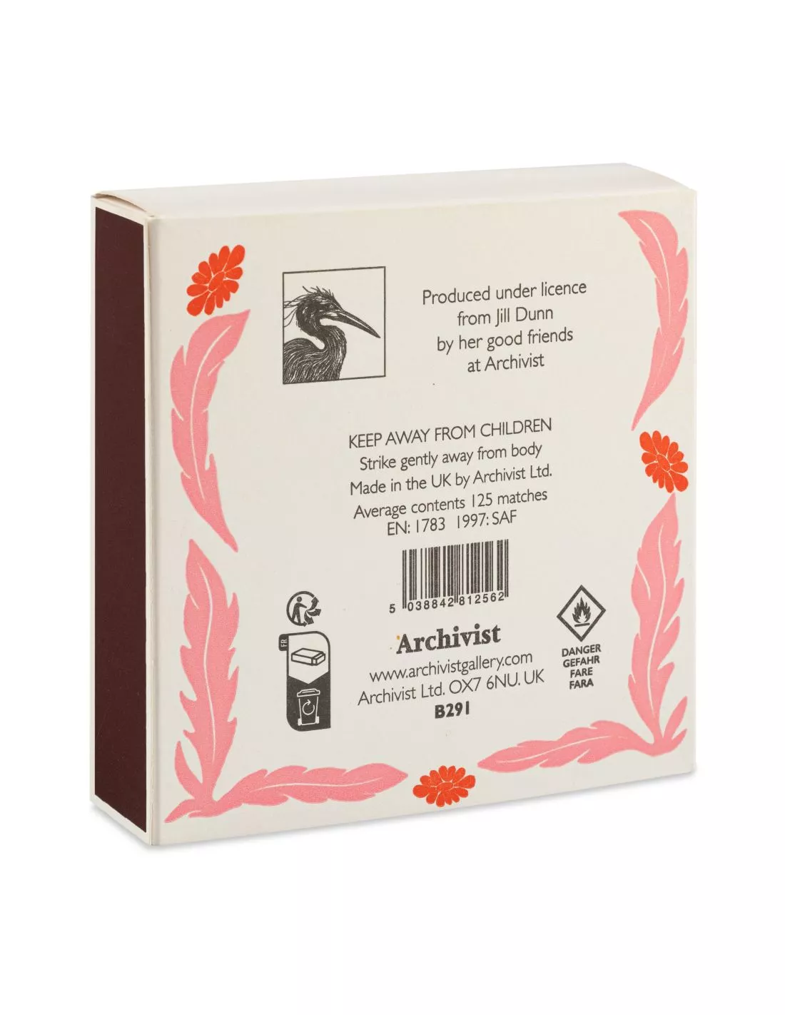 Les boites d’allumettes Archivist sont conçues, imprimĂ©s et assemblĂ©es au Royaume Uni. Chaque motif est un dessin original rĂ©alisĂ© par la marque.