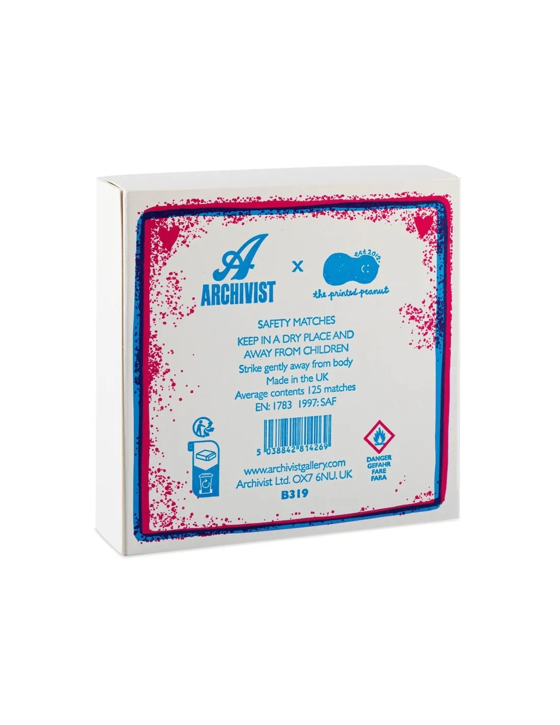 Les boites d’allumettes Archivist sont conçues, imprimés et assemblées au Royaume Uni. Chaque motif est un dessin original réalisé par la marque.