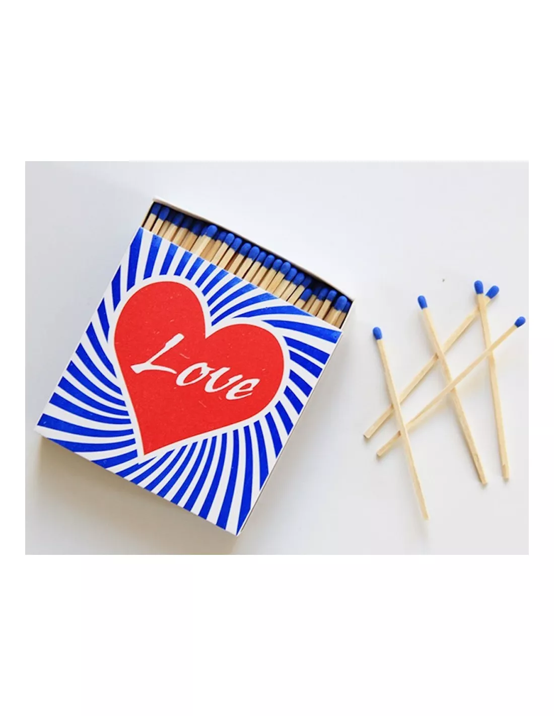 Petit plus, les tĂŞtes des allumettes sont de couleur bleu marine.Â