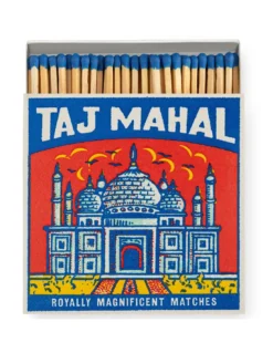 Pour les explorateurs et les rĂŞveurs, la boite d’allumettes du Taj Mahal se dresse comme un tĂ©moignage d’amour et de dĂ©vouement incommensurables. L’une des sept merveilles du monde qui capture les cĹ“urs et les imaginations ! L’impression colorĂ©e, audacieuse et amusante est inspirĂ©e par l’une des Ă©tiquettes de boĂ®tes d’allumettes vintage les plus anciennes !