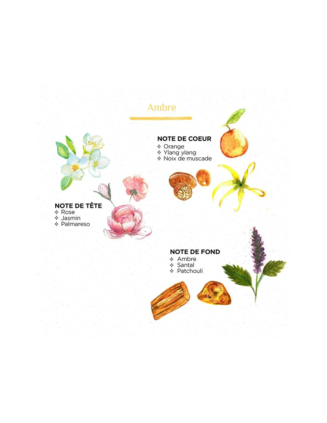 Parfum : Ambre L’Ambre est un parfum précieux, qui nous plonge directement dans les déserts d’Orient. Il possède des notes mythiques, subtiles et chaudes, et on lui prête parfois des vertus aphrodisiaques…