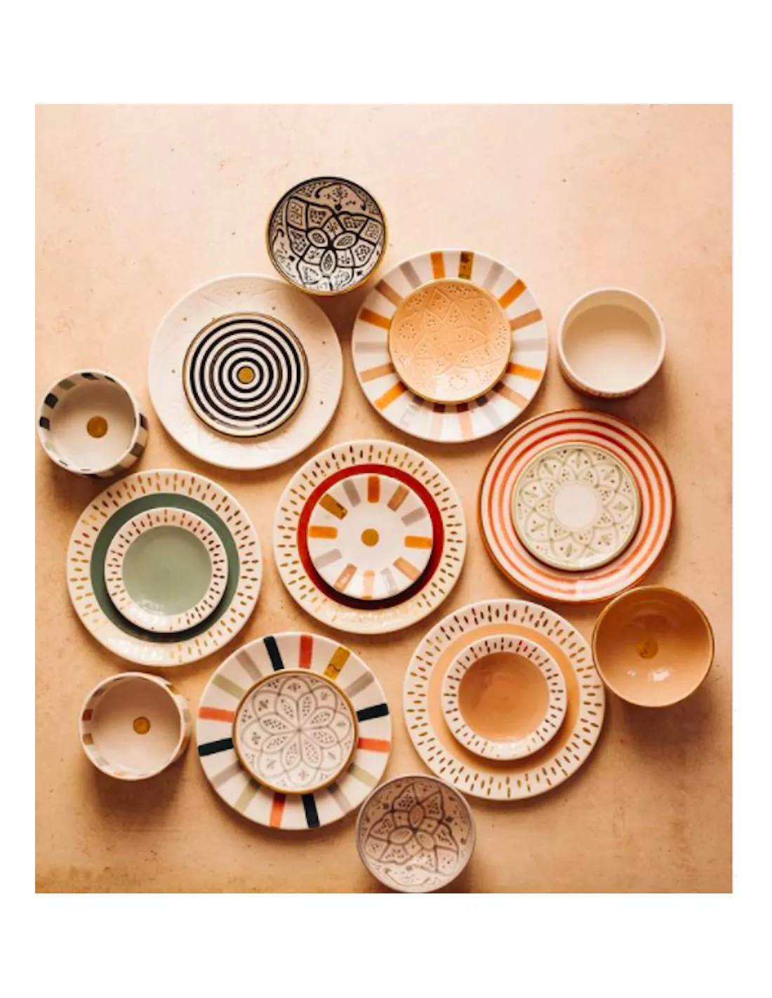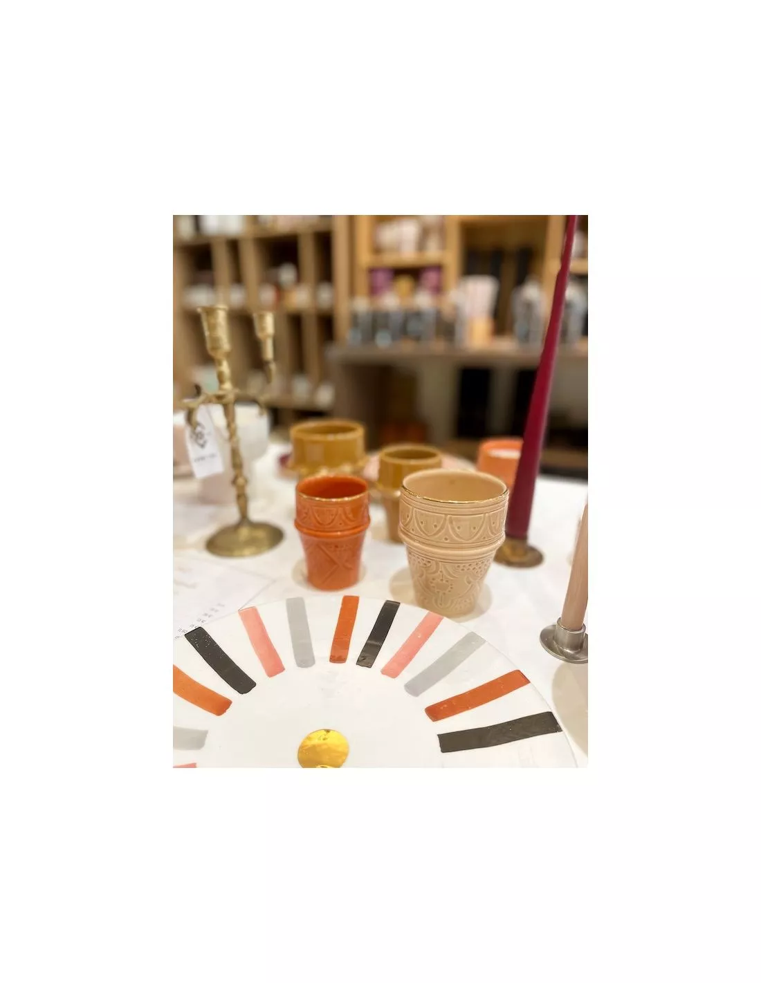 La cĂ©ramique est fabriquĂ©e et peinte de façon traditionnelle, par des artisans Ă Marrakech. Chaque crĂ©ation est unique.:Â