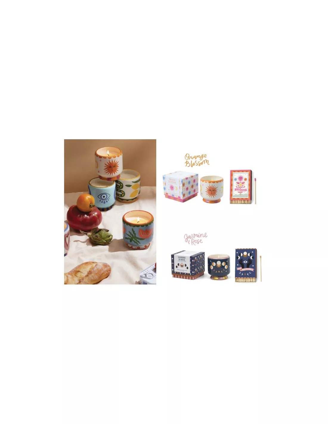 Jolie boite d’allumettes assortie Ă la collection de bougies parfumĂ©es Paddywax Adopo.