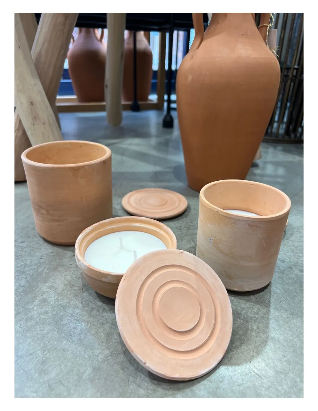 Découvrez notre collection authentique avec sa jolie teinte Terracotta aux huiles essentielles 100% naturelles concentrées à 10%. Ces bougies avec leurs contenants en terre cuite fait-main trouveront aisément leur place dans un intérieur ou sur une terrasse