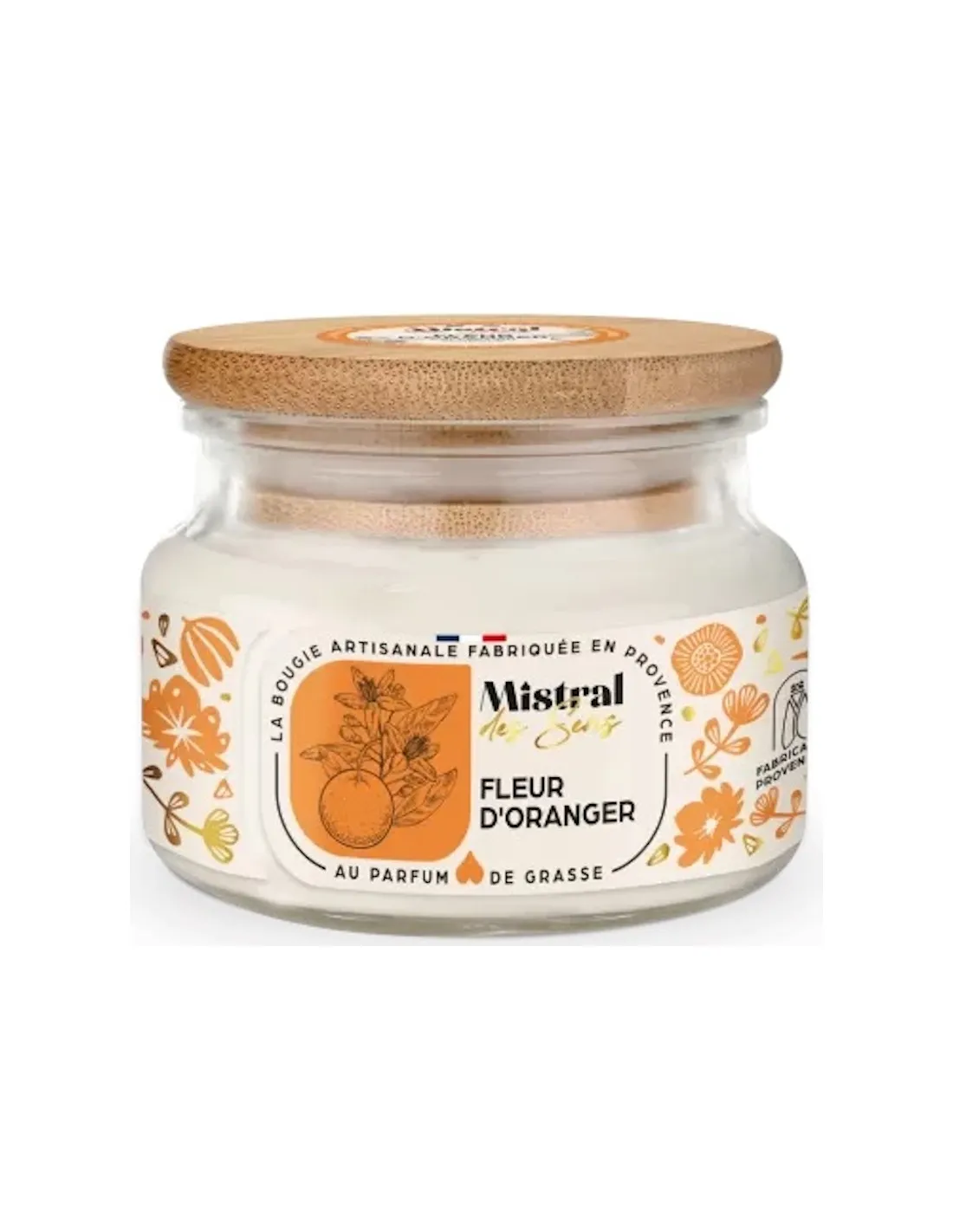 Les bougies parfumées Mistral des Sens sont toutes composées d’une cire de soja, d’une mèche sans plomb le tout coulé dans un verre recyclable et réutilisable, avec un capuchon en bambou.