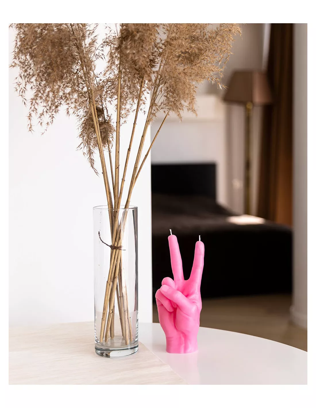 Une bougie originale de haute qualitĂ© pour exprimer votre opinion, votre humeur ou votre vision de la vie ! Cette bougie en forme de signe de la paix très rĂ©aliste apportera une touche dĂ©calĂ©e Ă votre intĂ©rieur.Â