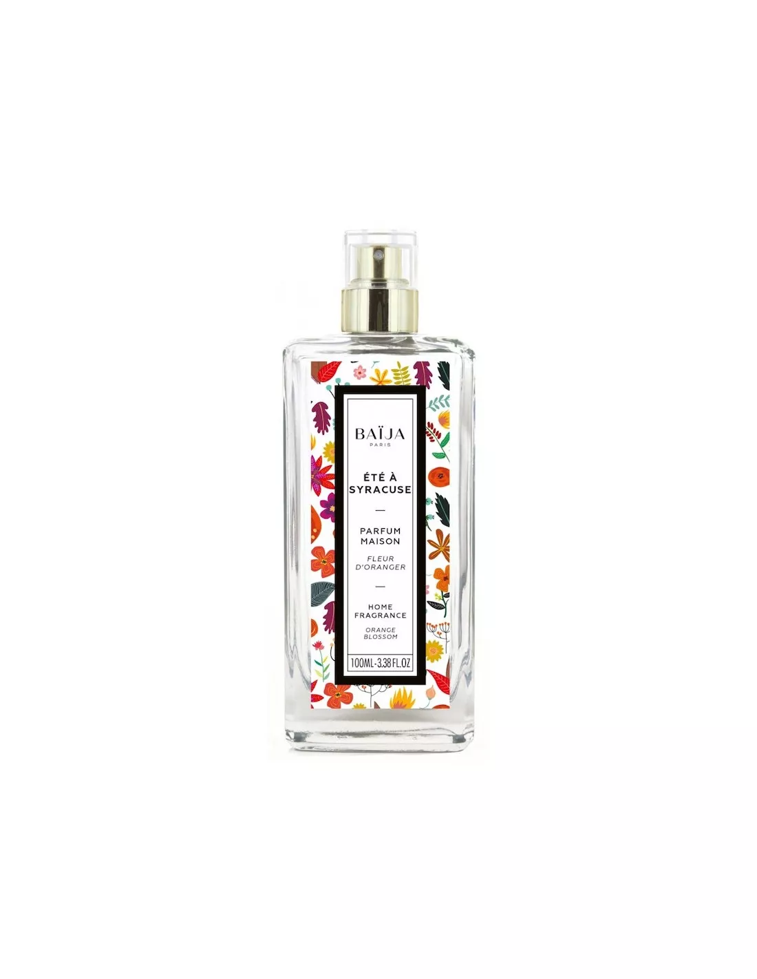 Une brume d’intérieur parfumée divinement ensoleillée, présentée dans une bouteille en verre transparente.