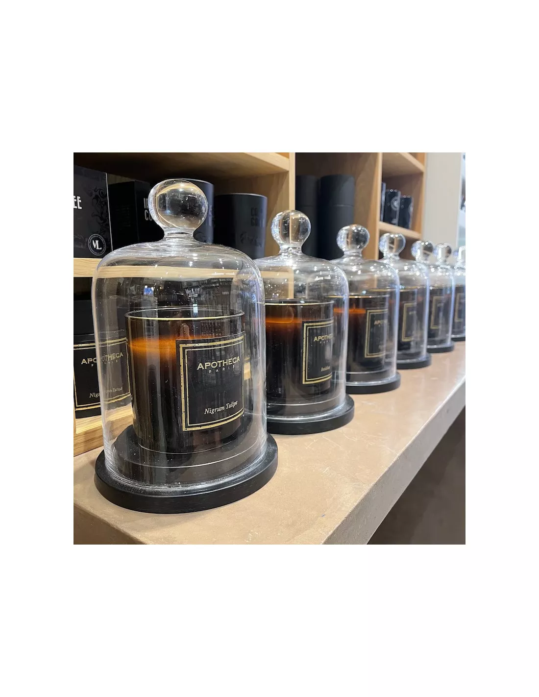 Cloche en verre transparente accompagnée de son socle en bois massif de couleur noir. Elle est équipée d’un bouton pour une prise en main facile. Cette cloche capturera toutes les fragrances de votre bougie préférée et la protègera des éventuels dépôts de poussière. Elle est l’objet de décoration idéal qui mettra parfaitement en valeur votre bougie dans votre intérieur.