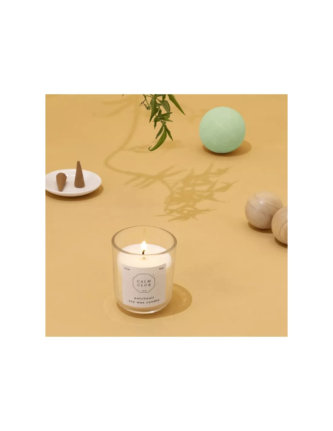 - Une bougie parfumée au patchouli en cire de soja, 55g.