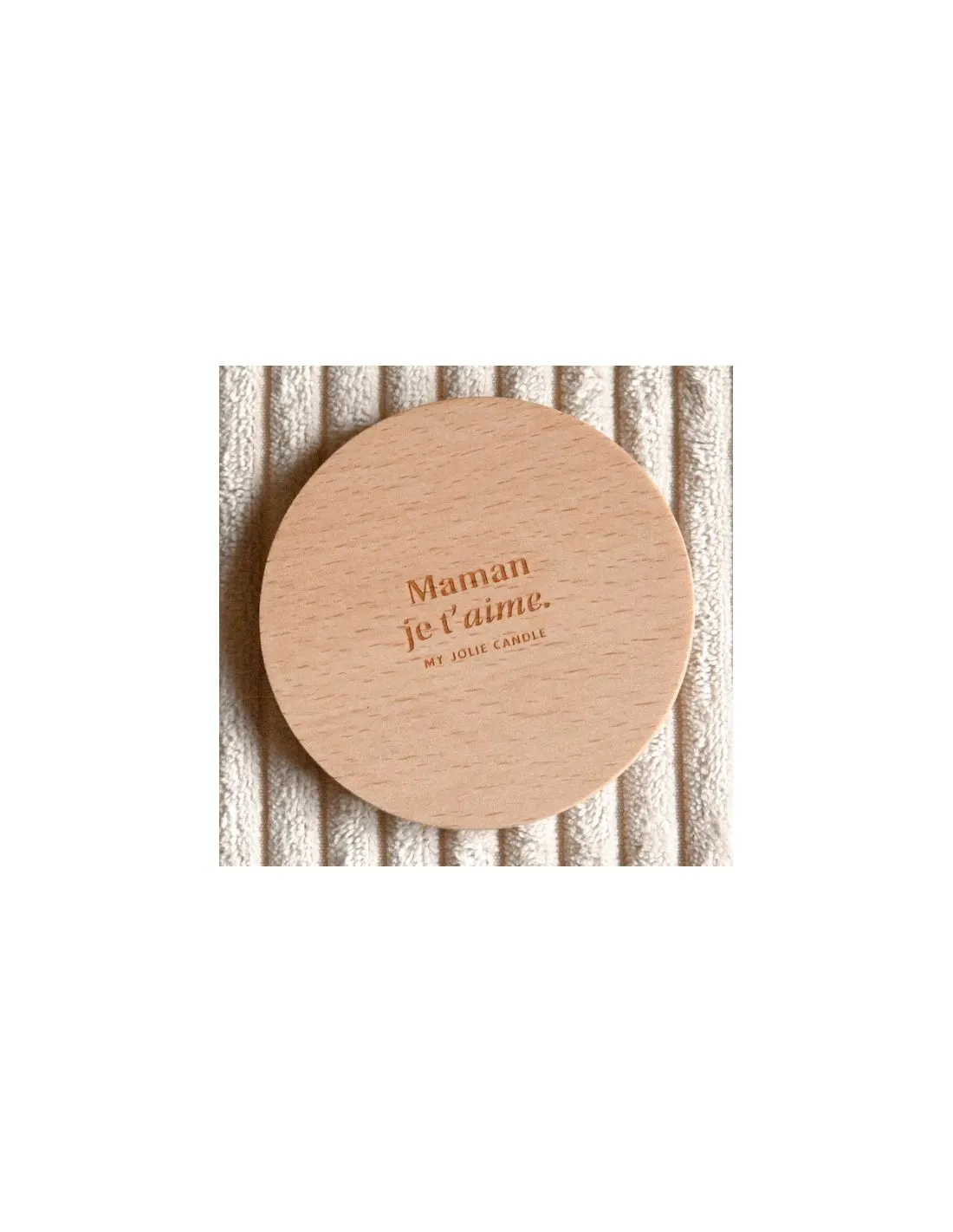 Couvercle en bois Maman Je T’aime – My Jolie Candle : Capot en bois pour couvrir vos bougies 200 ou 250gr.
