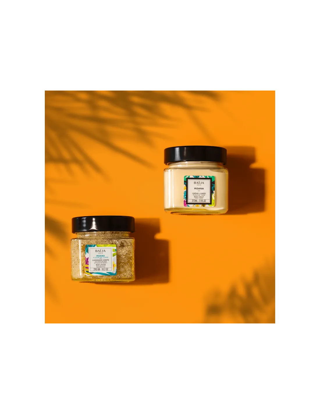 A propos du parfum Moana : La fleur de tiaré, fleur blanche symbole de pureté puissante et enivrante se mêle aux accords de vanille et de coco.