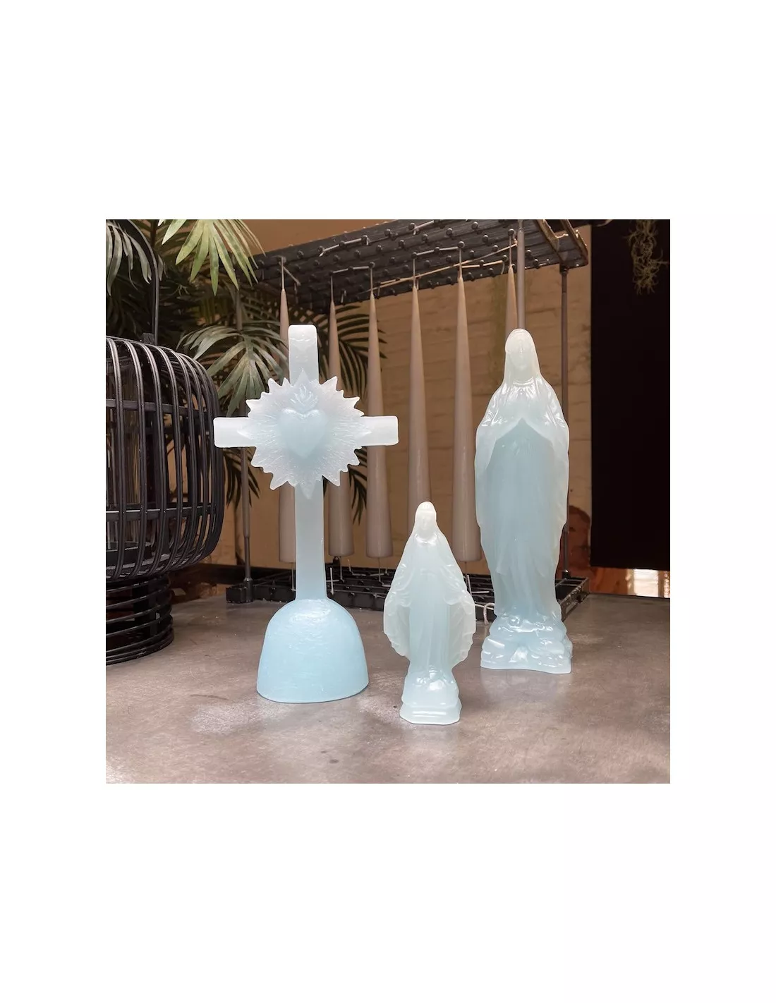 Coeur de lumière de couleur bleu ciel 30 cm fabriqué artisanalement en France par la Ciergerie des Premontrés, dernière ciergerie manuelle de France et entreprise.