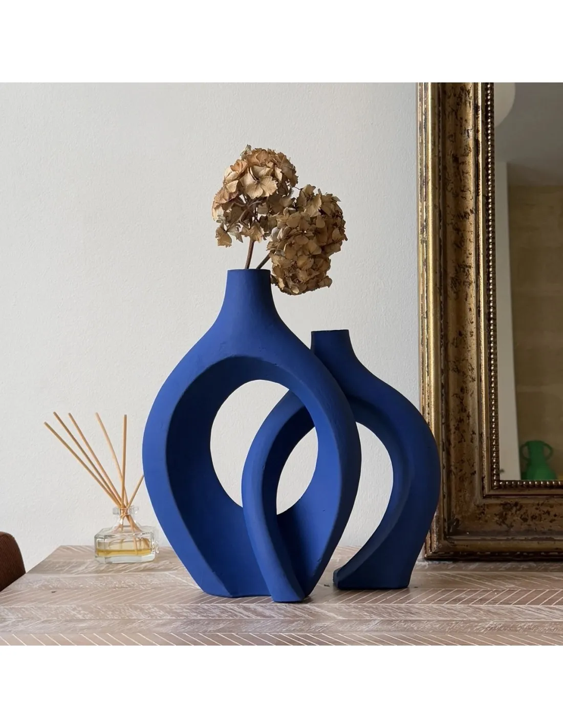 Que vous soyez à la recherche d’un accent décoratif discret ou d’une pièce maîtresse qui attire l’attention, le duo de vases bleu Maison Marmol est l’objet qu’il vous faut pour apporter style et personnalité à votre espace. Sa simplicité et son caractère en font une pièce idéale pour tout type d’intérieur, du plus moderne au plus traditionnel.