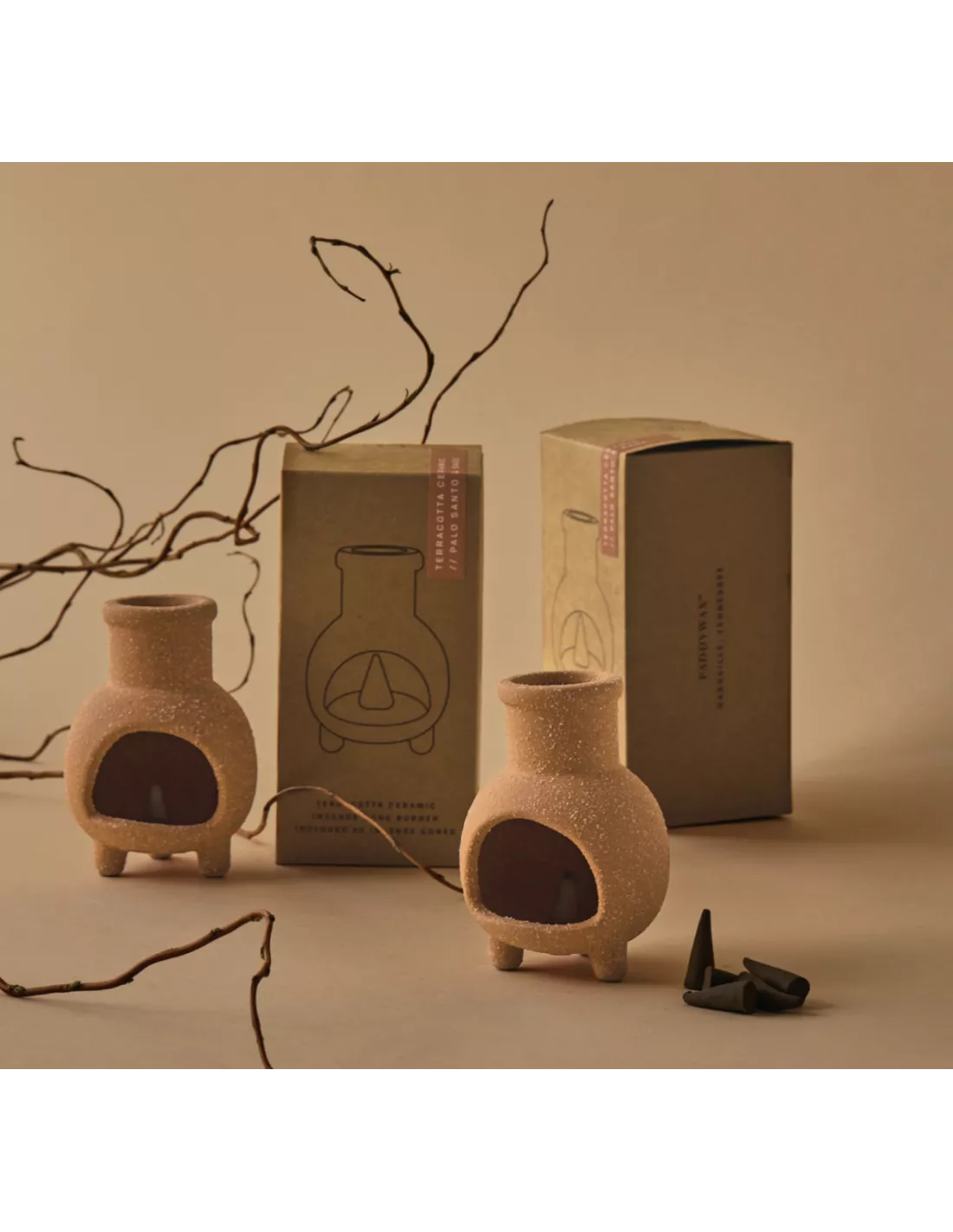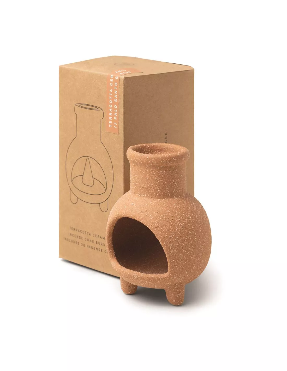 Il est livrĂ© avec 20 cĂ´nes d’encens au parfum de sauge et de Palo Santo.Â