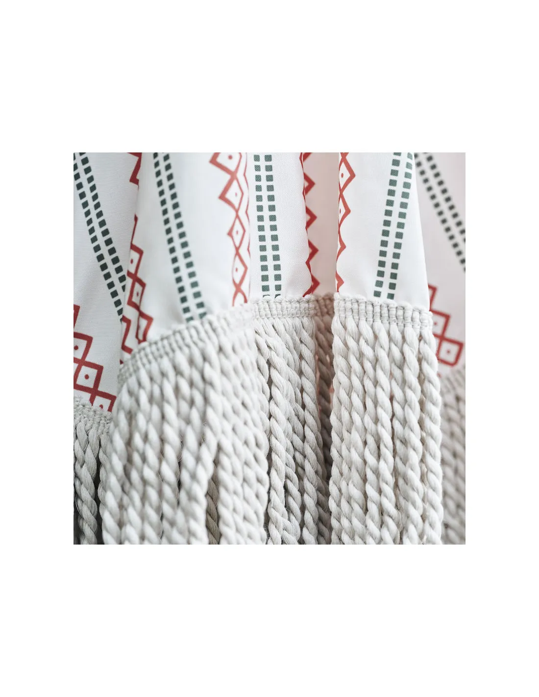 Complétez votre espace extérieur et restez protégé du soleil avec ce superbe parasol à l’allure vintage. Son design intemporel rouge et vert associé à ses franges longues ajouteront la touche finale à votre extérieur pour la belle saison.