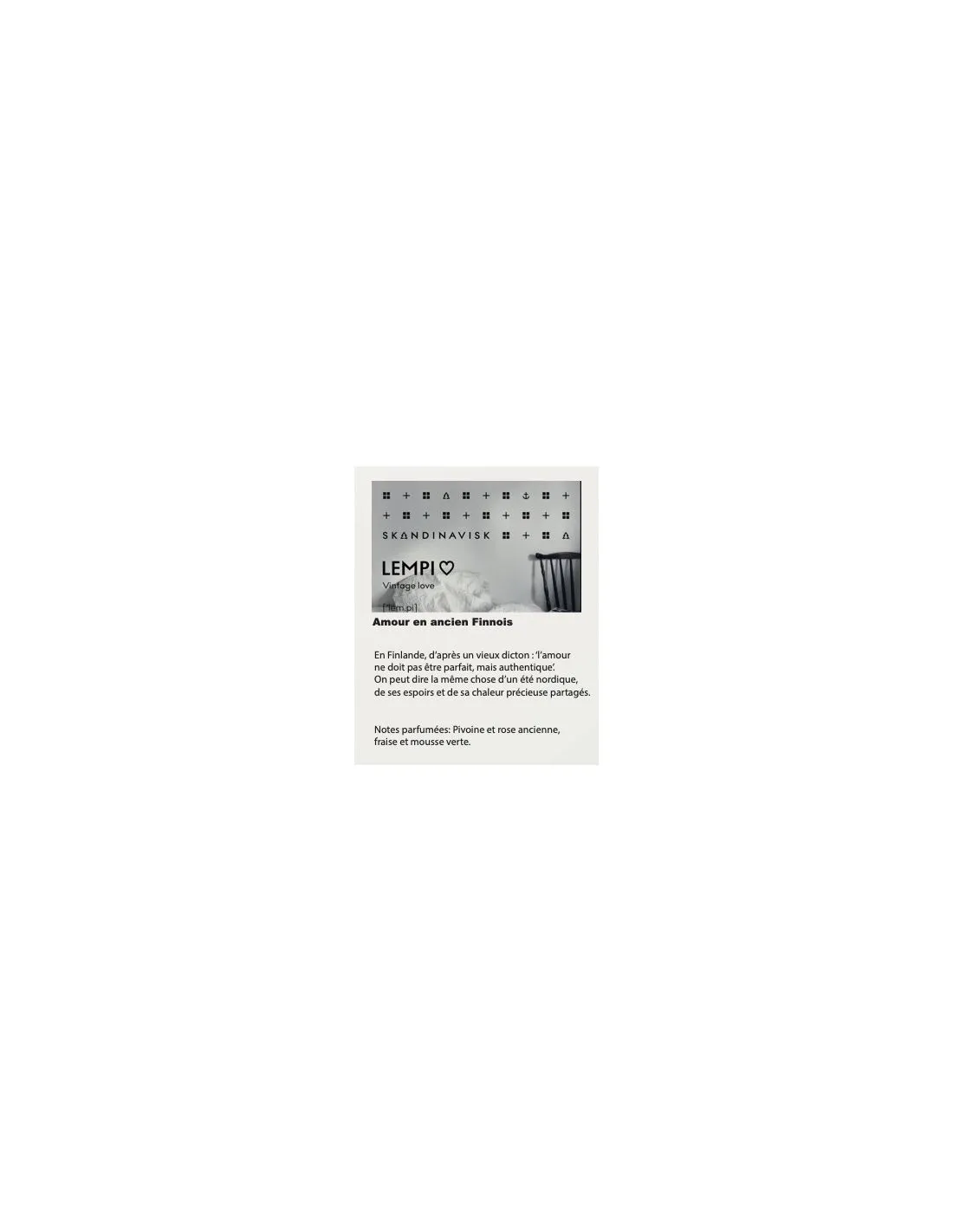 Un bel Ă©quilibre de fleurs et de fruits, comme un doux moment d’amour, Lempi est un diffuseur Ă la senteur sensuelle et raffinĂ©e. Autour des notes de roses et de pivoine, de la mousse de chĂȘne et des fraises sucrĂ©es.